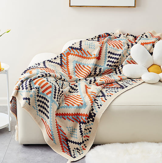 Bohemia Style Woven Throw Decorative Blanket Knitting Tassel Throw Blanket Sofa Couch Throw Handmade Office Blanket Living Room Decor Gift Inactive