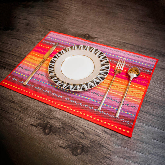 Art Woven Placemat Set Handmade Personalized Plate Mat Kitchen Decoration Colorful Red