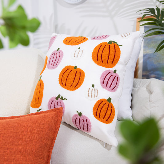 Autumn Fall Pillow Case Colorful Pillow Pumpkin Embroidered Throw Pillow Case Decorative Orange White Pumpkin/Housewarming gift