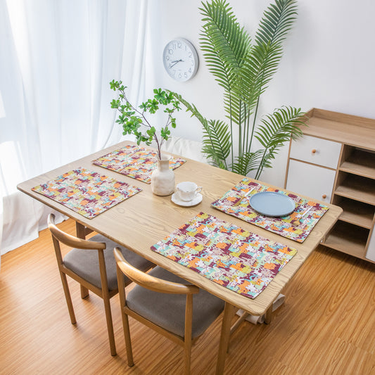 Cutie Kitty Cat Kitten Design Canvas Placemat Set Handmade Personalized Plate Mat Kitchen Decoration Picnic Mat Placemats