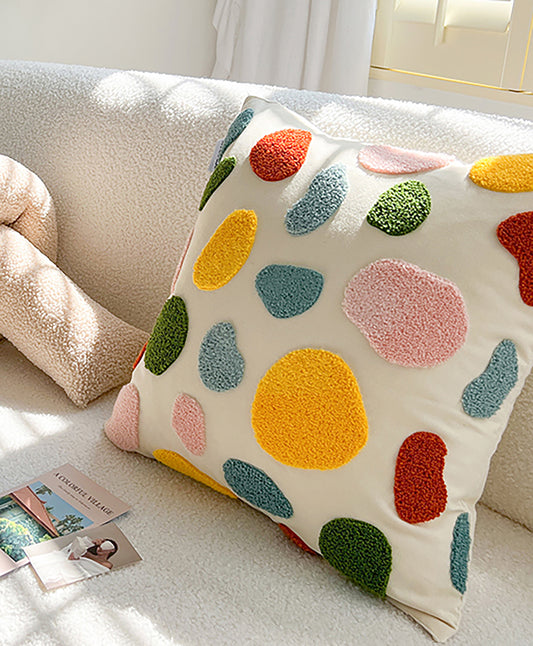 Fashion Summer Pillow Case Cute Colorful Pillow Flower Embroidered Polka Dot Throw Pillow Case Decorative Pillow Case Housewarming Gift