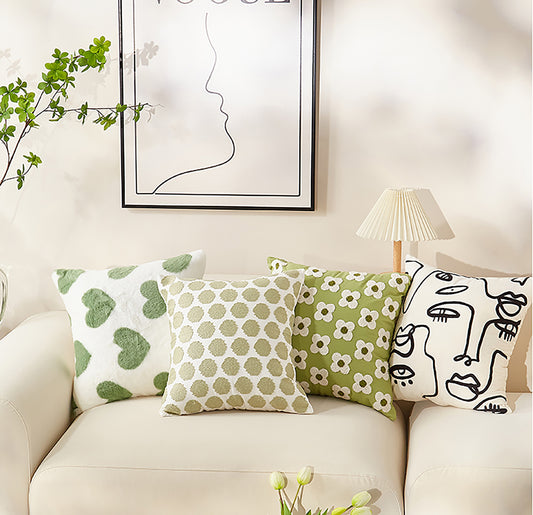 Fashion Pillowcase Cute Green Pillow Heart Embroidered Throw Pillow Case Decorative Pillowcase/ Housewarming gift/ Personalized Pillow Cover