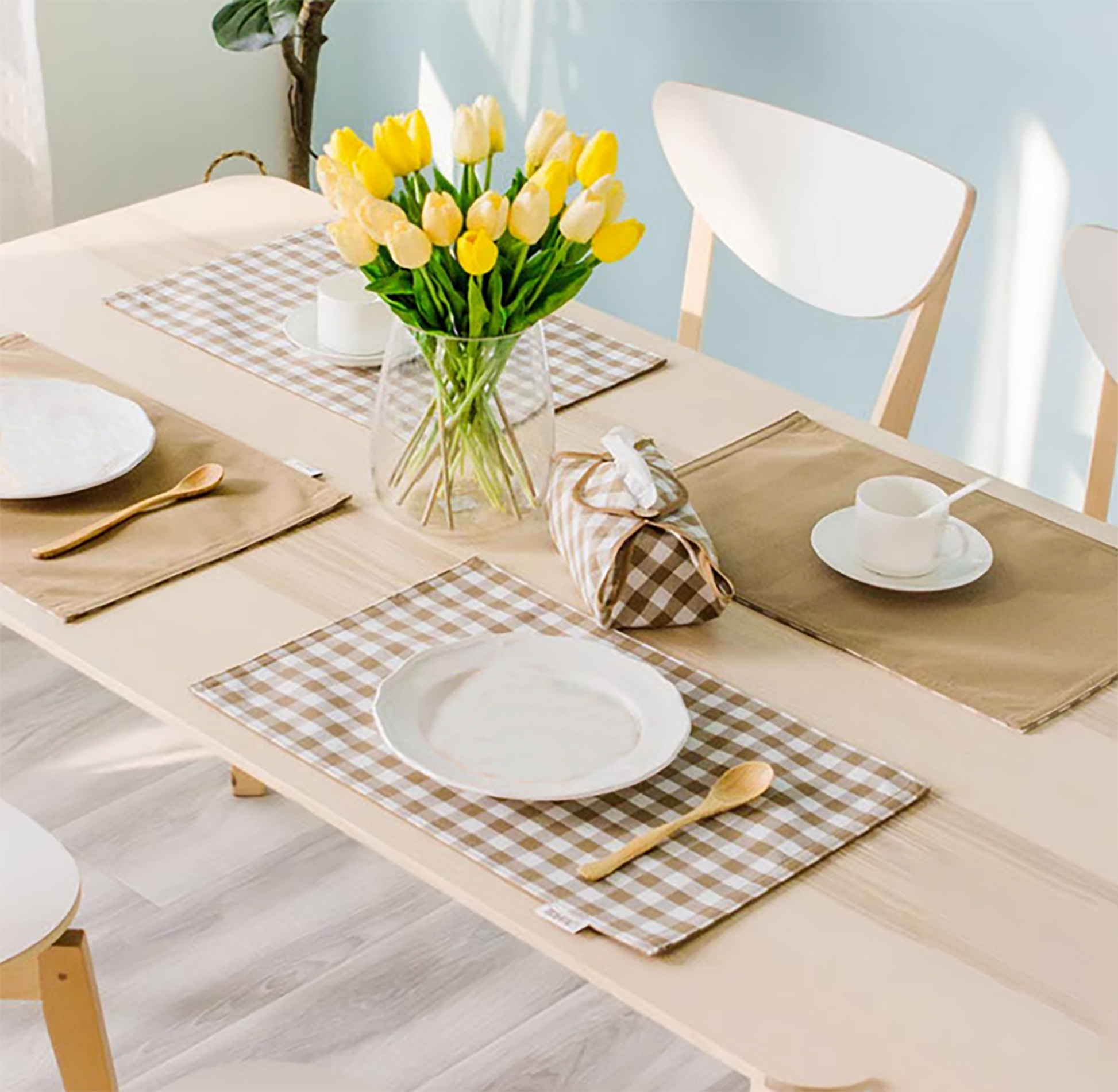 This handmade placemats construction is durable and easy to clean. It is designed for all seasons. Double Sided with different design on each side. One side is Solid and another one is Checkerboard pattern. Perfect products to decorate the home and also a great choice of the gifts for yourself, partner, friends and family members!!