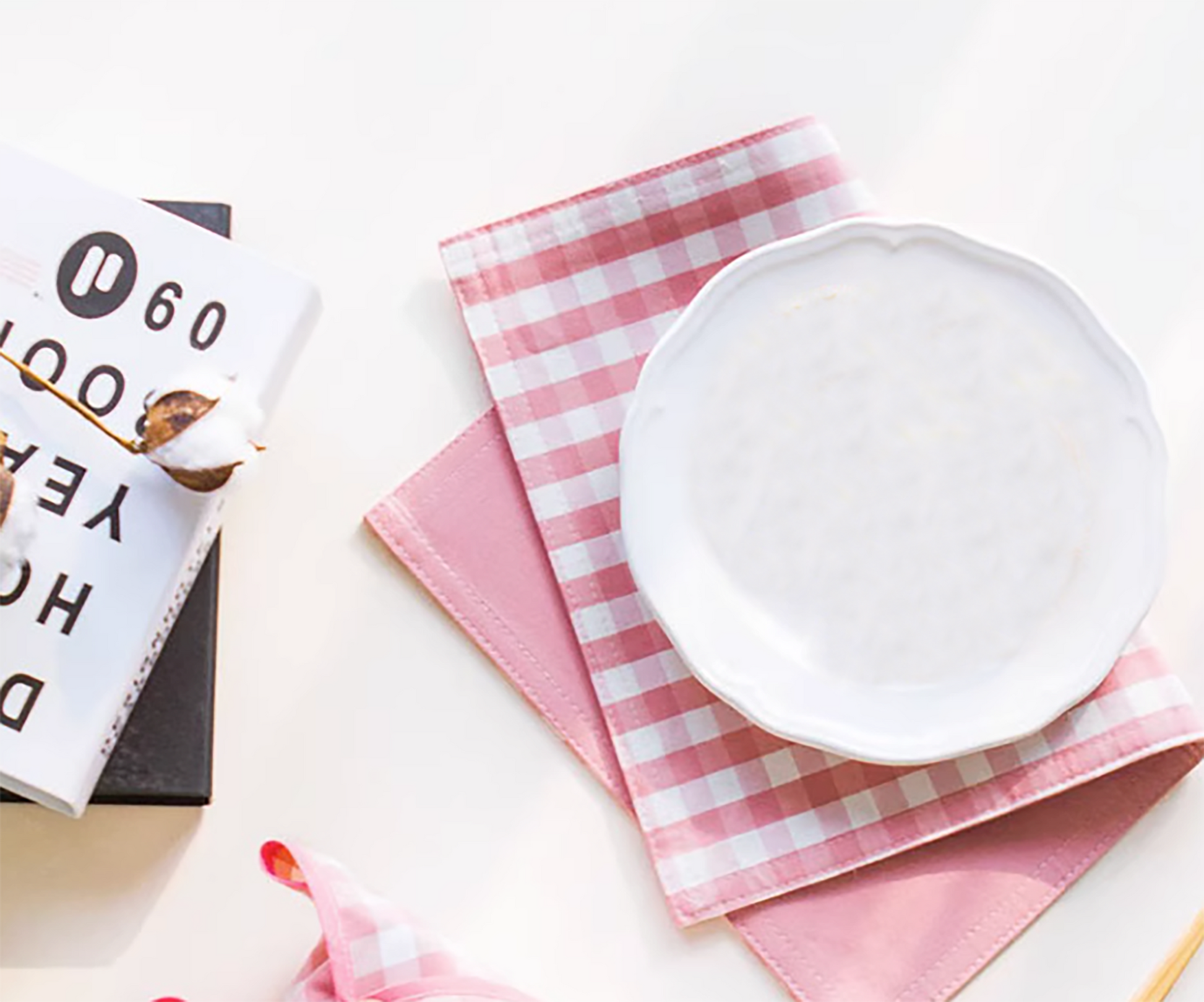 DUO Placemat Set Double Sided Checkerboard Pattern Solid Color Handmade Plate Mat Kitchen Decoration Picnic Mat Barbie Pink