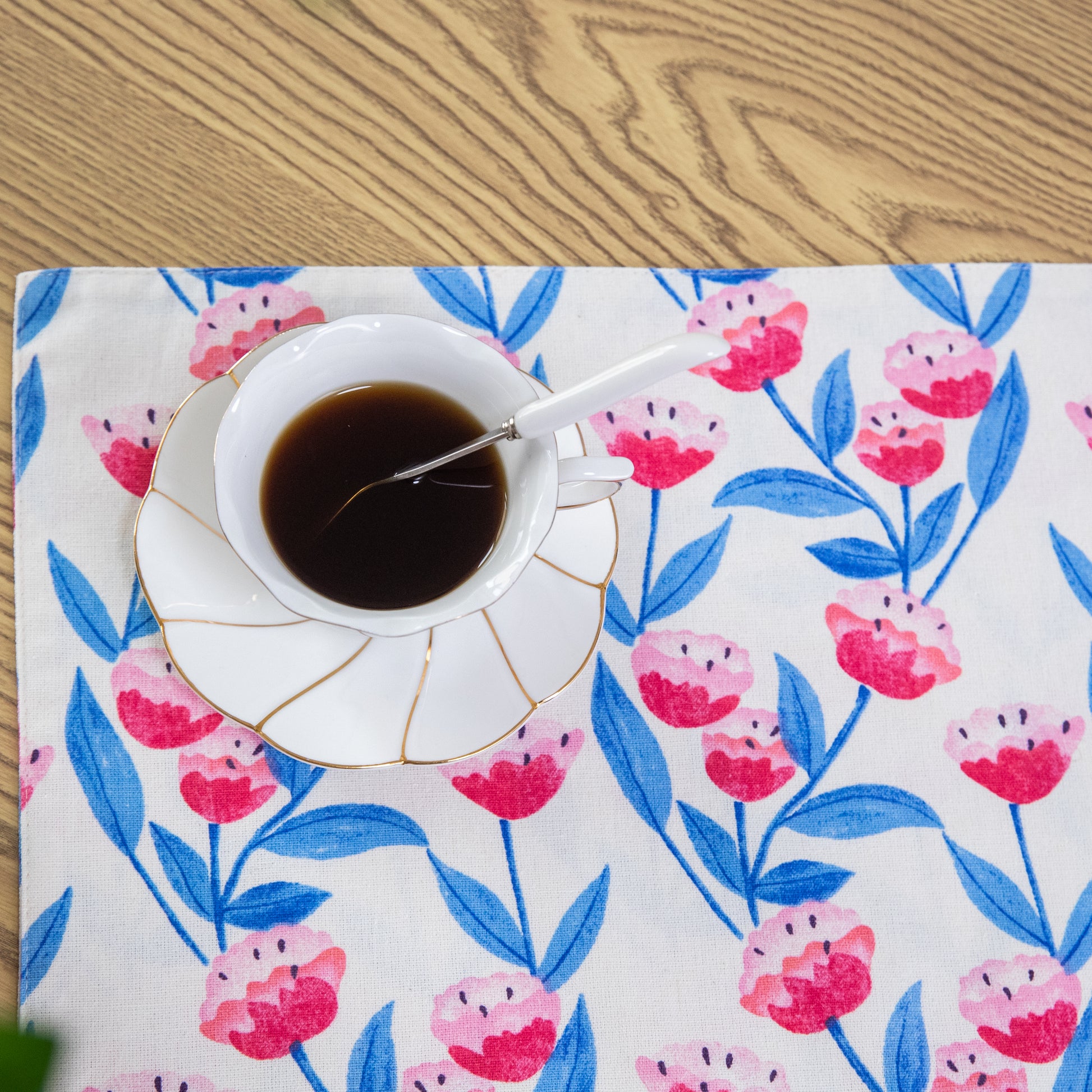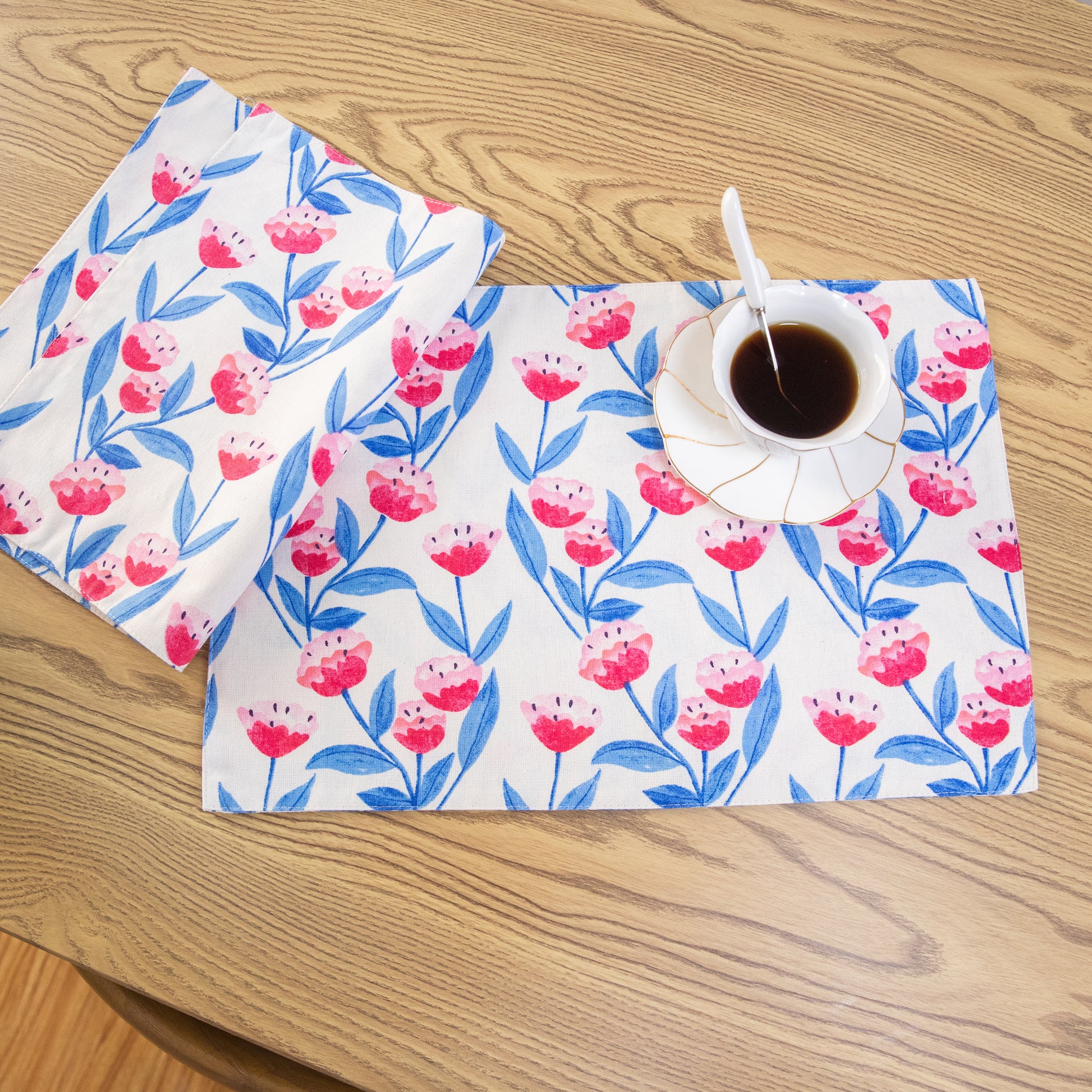 Flower Cotton Linen Placemat Set Handmade Personalized Plate Mat Kitchen Decoration Picnic Mat Placemats Flower Design Pink Blue