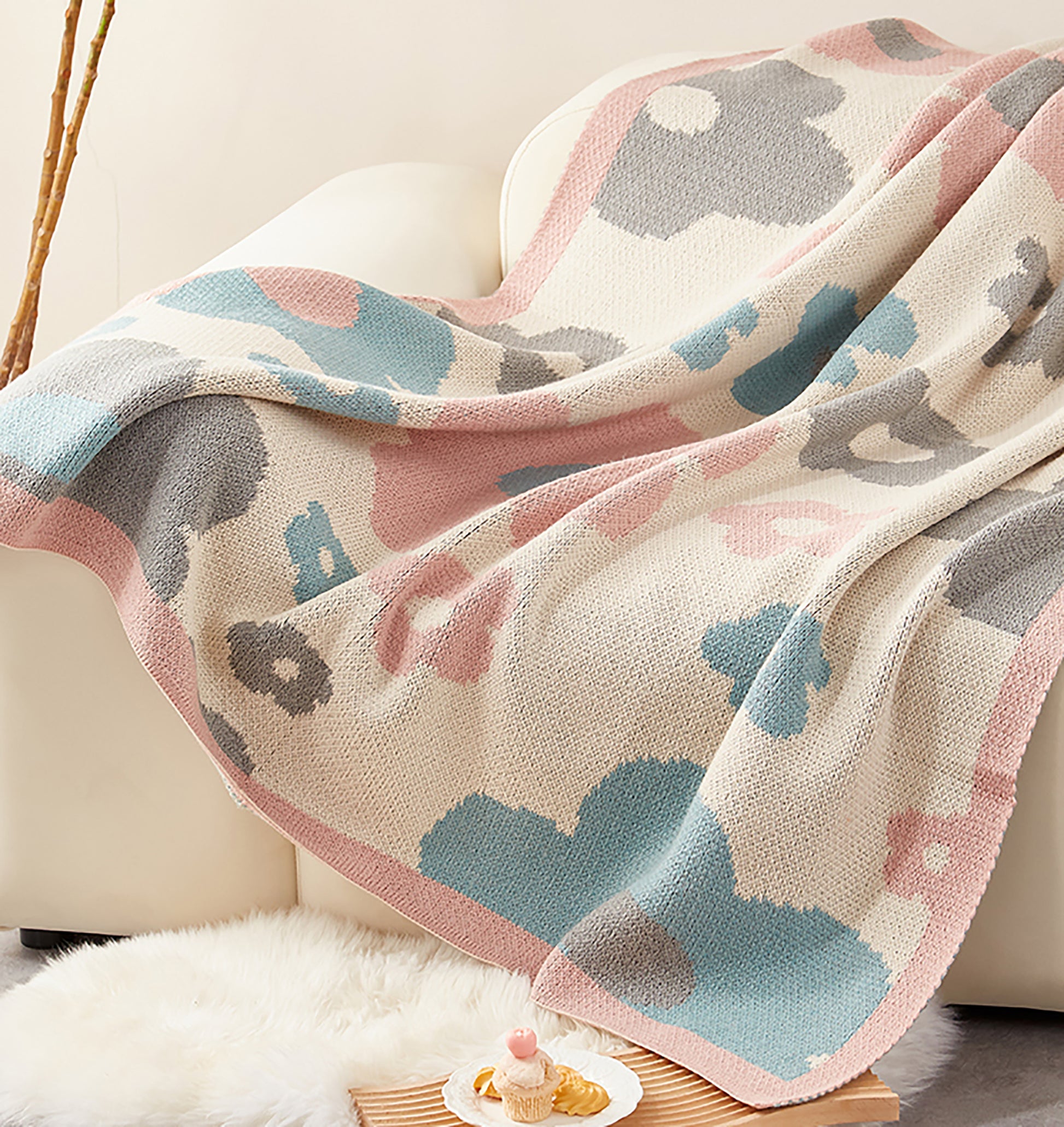 Flower Decorative Blanket Woven Throw Blanket Sofa Couch Office Blanket Pink Blue White Black