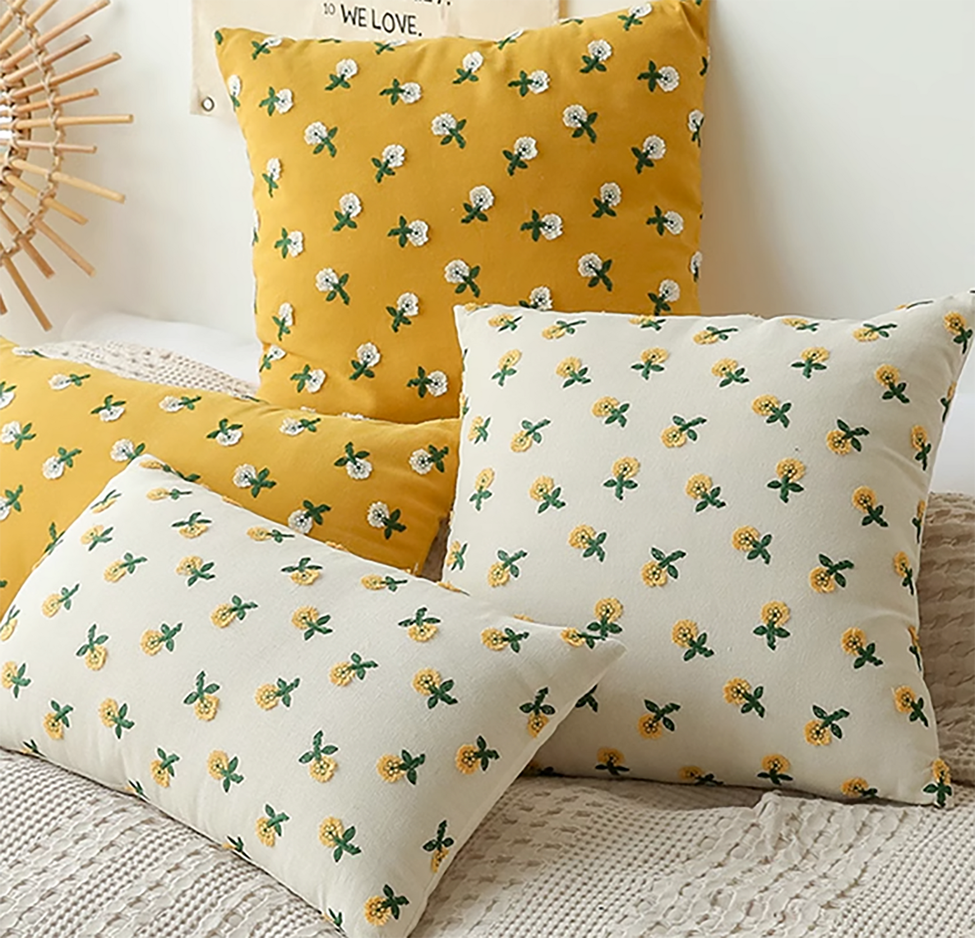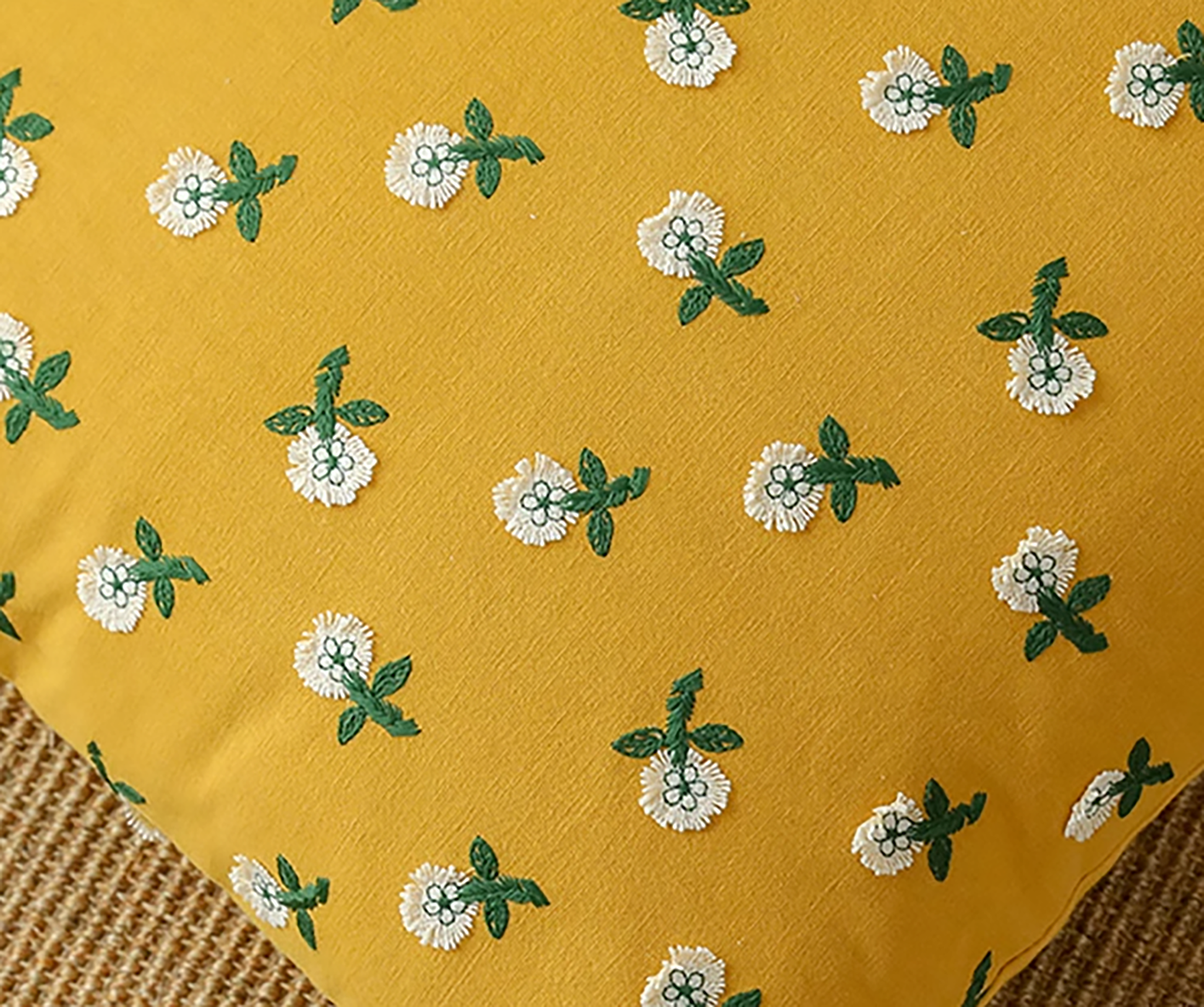 Flower Embroidered Throw Pillow Case Yellow White Small Flower Cute Flower Decorative Housewarming gift