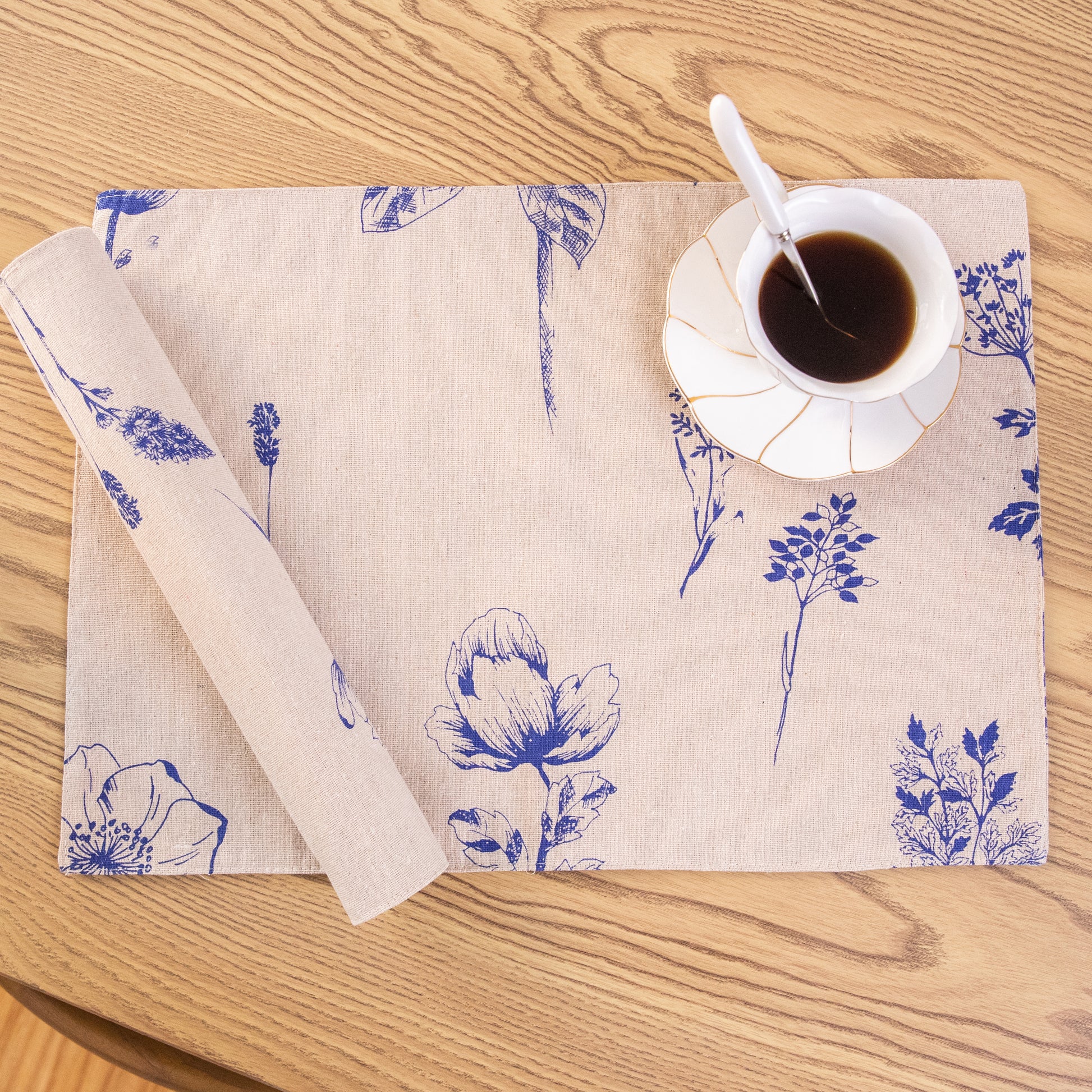 Flower Placemat Set Handmade Personalized Plate Mat Kitchen Decoration Picnic Mat Cotton Linen Placemats Blue Flower Design