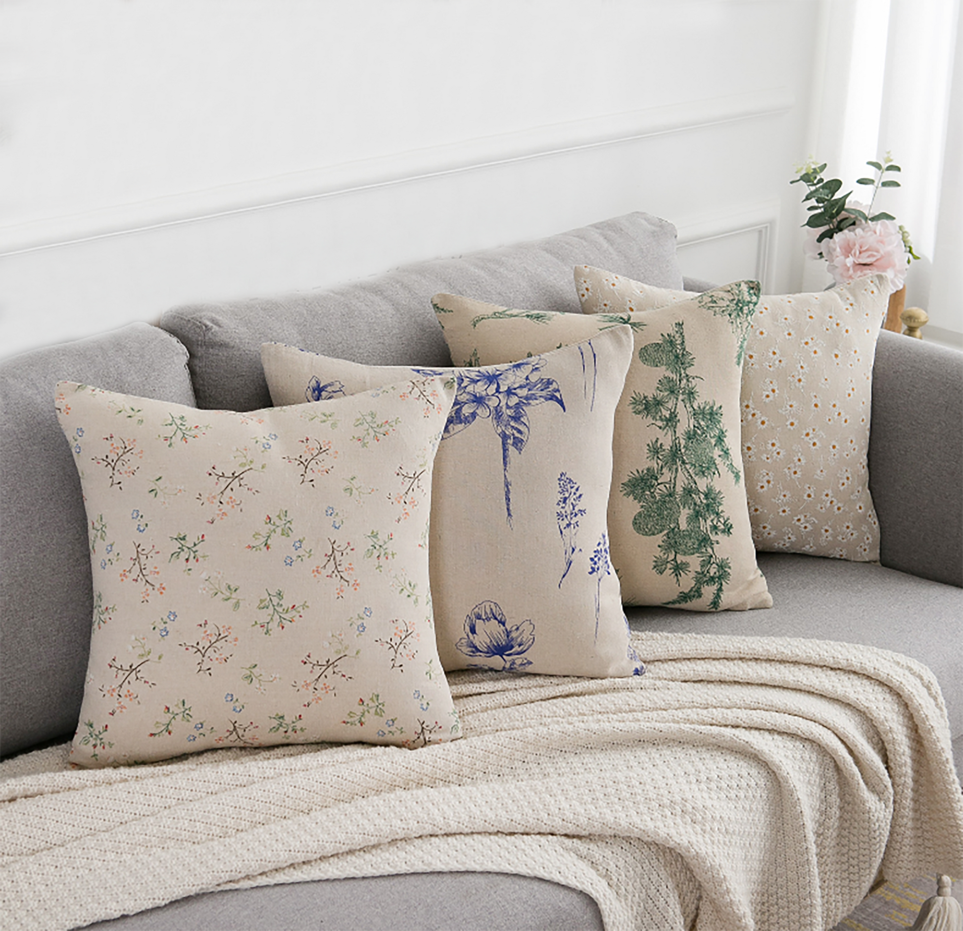 Nature Style Cotton Linen Pillow Case Pine Tree Pillow Daisy Colorful Flower Throw Pillow Case Decorative Pillow Case Housewarming gift
