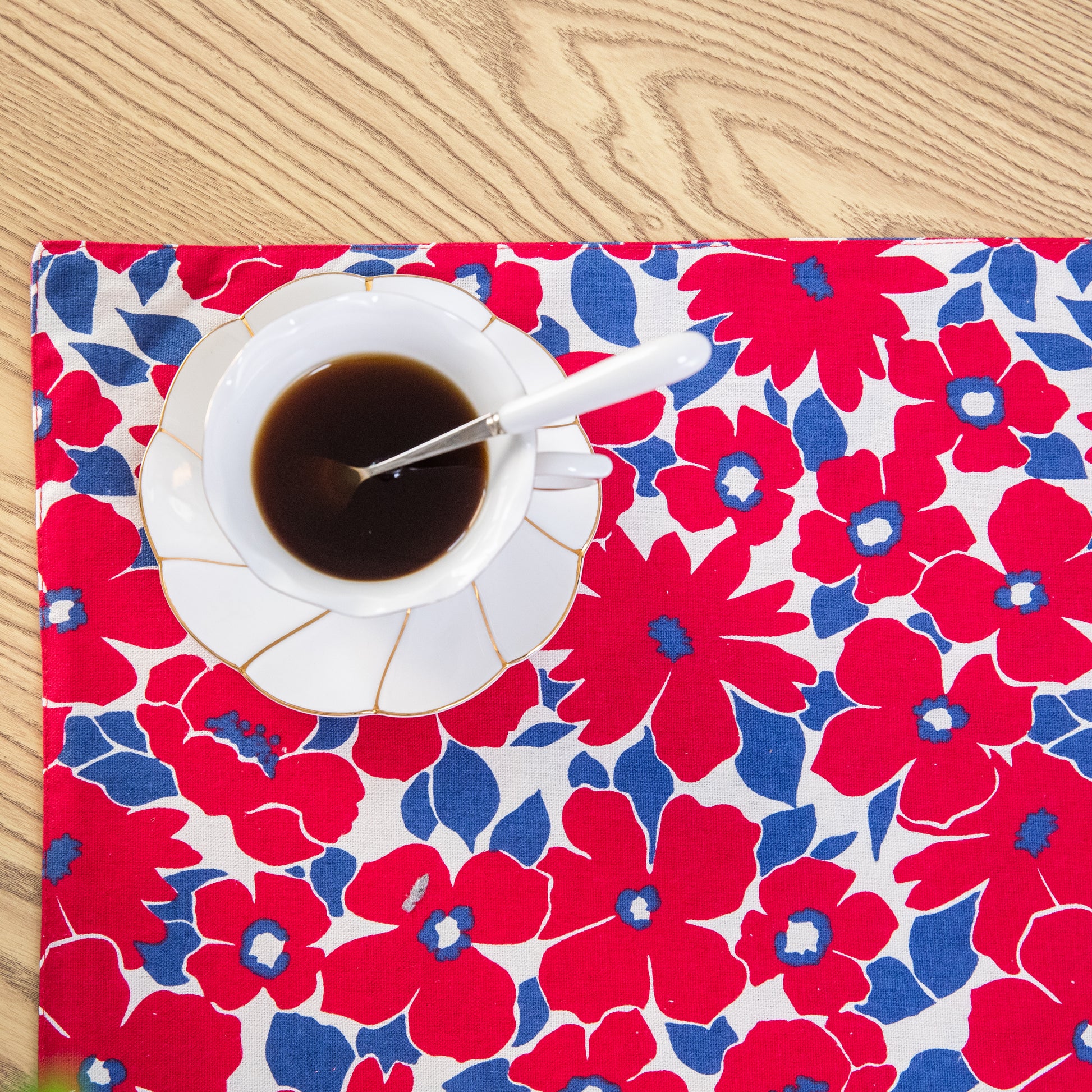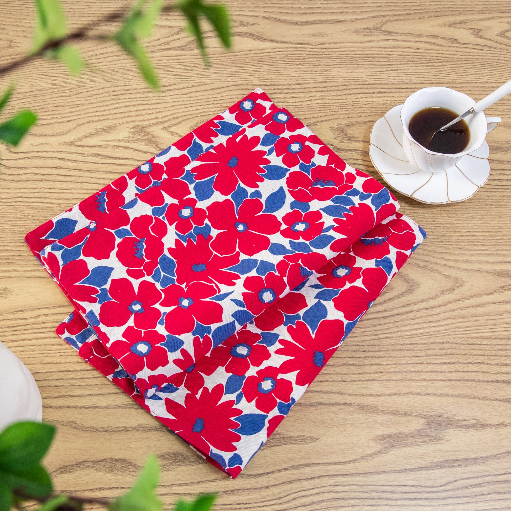 Red Flower Cotton Linen Placemat Set
