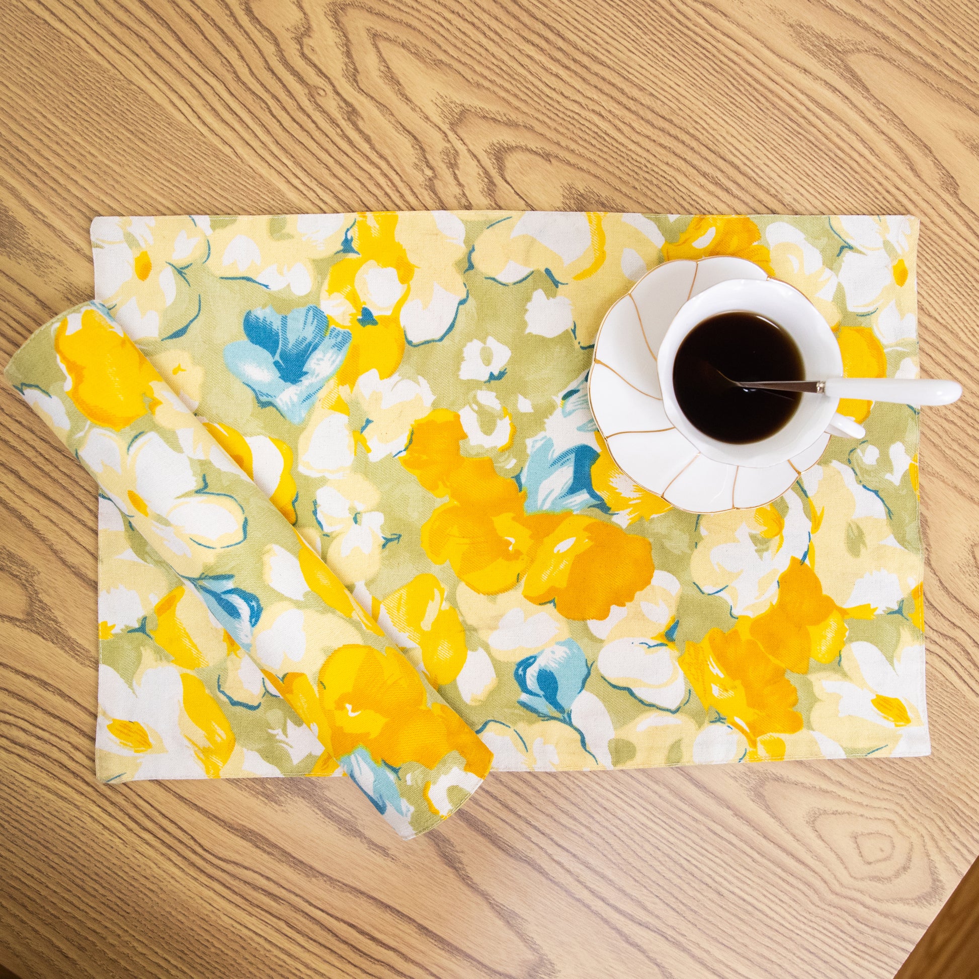 Yellow Flower Cotton Linen Placemat Set Handmade Personalized Plate Mat Kitchen Decoration Picnic Mat Placemats